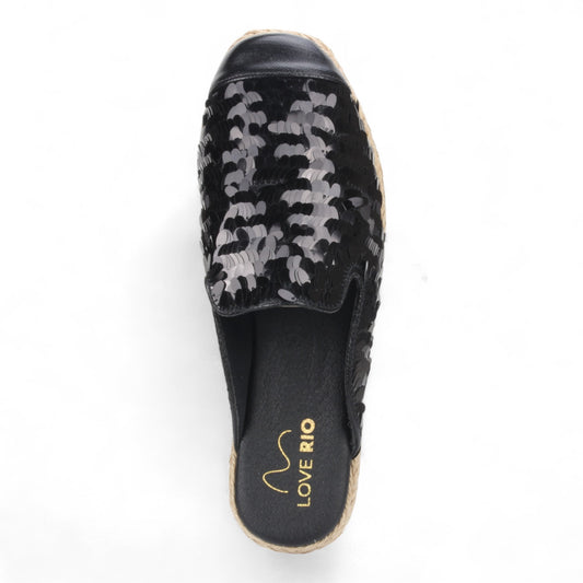 Love Rio Glitz Sequin Espadrille Mules - Black
