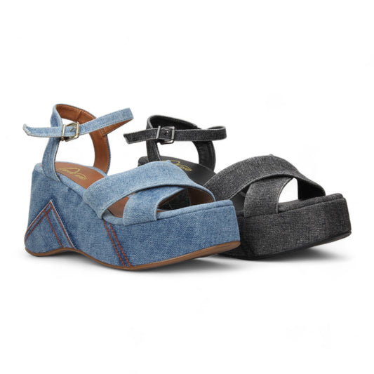 Love Rio Hazel Platform Bow Sandals - Amber Denim